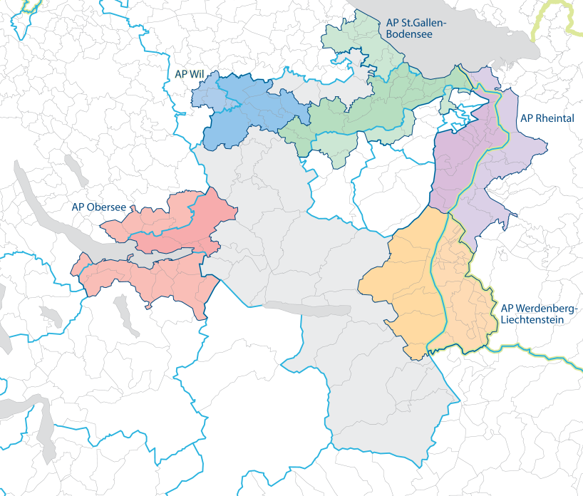 Der Kanton St.Gallen ist insgesamt bei fünf Agglomerationsprogrammen Teil der Trägerschaft. Drei weisen einen interkantonalen und zwei sogar einen internationalen Perimeter auf. Federführend in der Erarbeitung der Programme sind die Regionen. Sie entwickeln die Agglomerationsprogramme in enger Abstimmung mit den Gemeinden, den beteiligten Kantonen und dem benachbarten Ausland weiter.