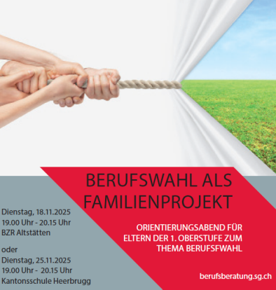 Die Berufs- und Laufbahnberatung Rheintal lädt Sie zu einem Vortrag ein. Entwicklungspsychologische Aspekte der Berufswahl,Rollen und Aufgaben der Eltern und das Bildungssystem werden thematisiert.