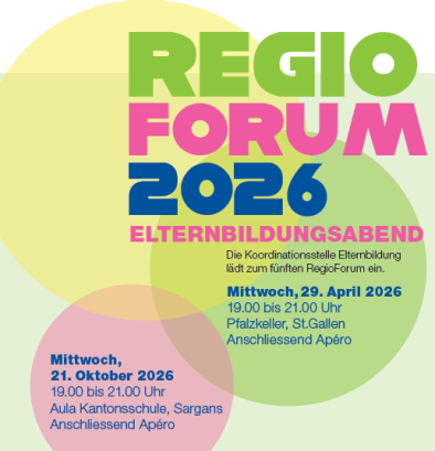 Das RegioForum ist ein Elternbildungsabend mit einem Referat zu einem Thema aus dem Familienalltag. Es findet jeweils in einer Region des Kantons St.Gallen statt. Im 2026 finden folgende RegioForen zum Thema «Mental Load» statt: