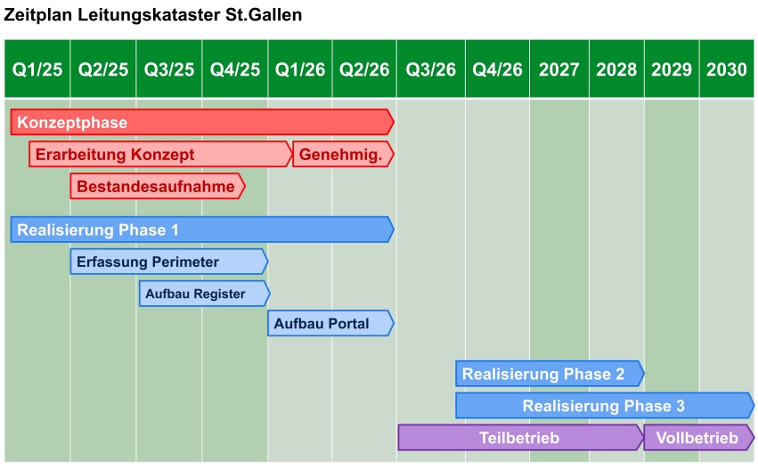 Im Moment ist geplant, dass die Konzeptphase und die Realisierungsphase 1 bis Mitte 2026 abgeschlossen sind.