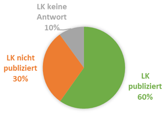Bereits heute werden die LK-Daten (belegter Raum, Medium, Eigentümer) für 60% der Leitungsnetze als Leitungskataster im Geoportal oder einem Gemeinde-GIS publiziert. Diese Informationen sind teils öffentlich zugänglich, häufig jedoch nur verwaltungsintern oder für einen beschränkten Benutzerkreis verfügbar. Für 30% der Netze erfolgt keine Publikation in einem medienübergreifenden Leitungskataster, und bei 10% liegen hierzu keine Angaben vor.