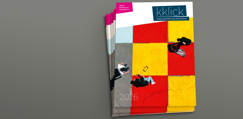 28 x Kultur = 28 x Vielfalt! Von Tanz über Baukultur bis hin zu Musik und Schauspiel: Das verspricht die neue kklick-Broschüre für den Start ins zweite Schulhalbjahr. Sämtliche Angebote laden dazu ein, mit den Schülerinnen und Schülern Kultur in ihrer ganzen Buntheit und Bandbreite auszuprobieren, wahrzunehmen und kultureller Bildung so in der Schule ihren Platz zu geben. Für jede Schulstufe ist etwas dabei und man sollte sich die Chance, davon zu profitieren, auf keinen Fall entgehen lassen. Broschüren-Bestellungen per E-Mail mit Anschrift an info@kklick.ch neues Fenster