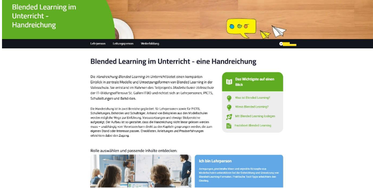 Die Handreichung Blended Learning bietet Lehrpersonen, PICTS, Schulleitungen und Behörden einen umfassenden Überblick über die Grundlagen, Methoden, Werkzeuge und Umsetzungsformen von Blended Learning in der Volksschule, sowie eine Sammlung aktueller Erkenntnisse aus den ITBO- Modellschulen, Best Practices und konkrete Handlungsempfehlungen für.